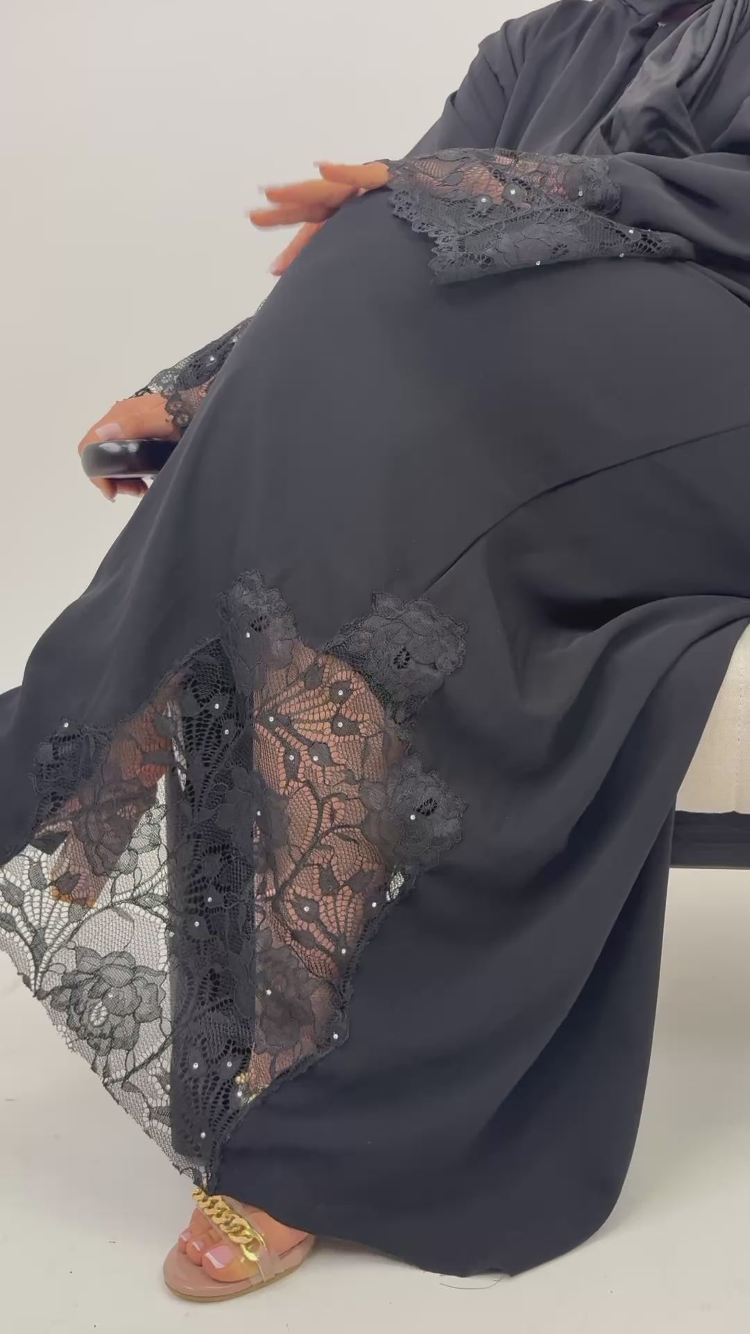 Symbole de féminité et de raffinement, cette abaya en dentelle signée abyra.style allie élégance moderne et sophistication intemporelle. Sa coupe fluide épouse délicatement les mouvements pour offrir une silhouette harmonieuse et gracieuse, tout en garantissant un confort absolu.